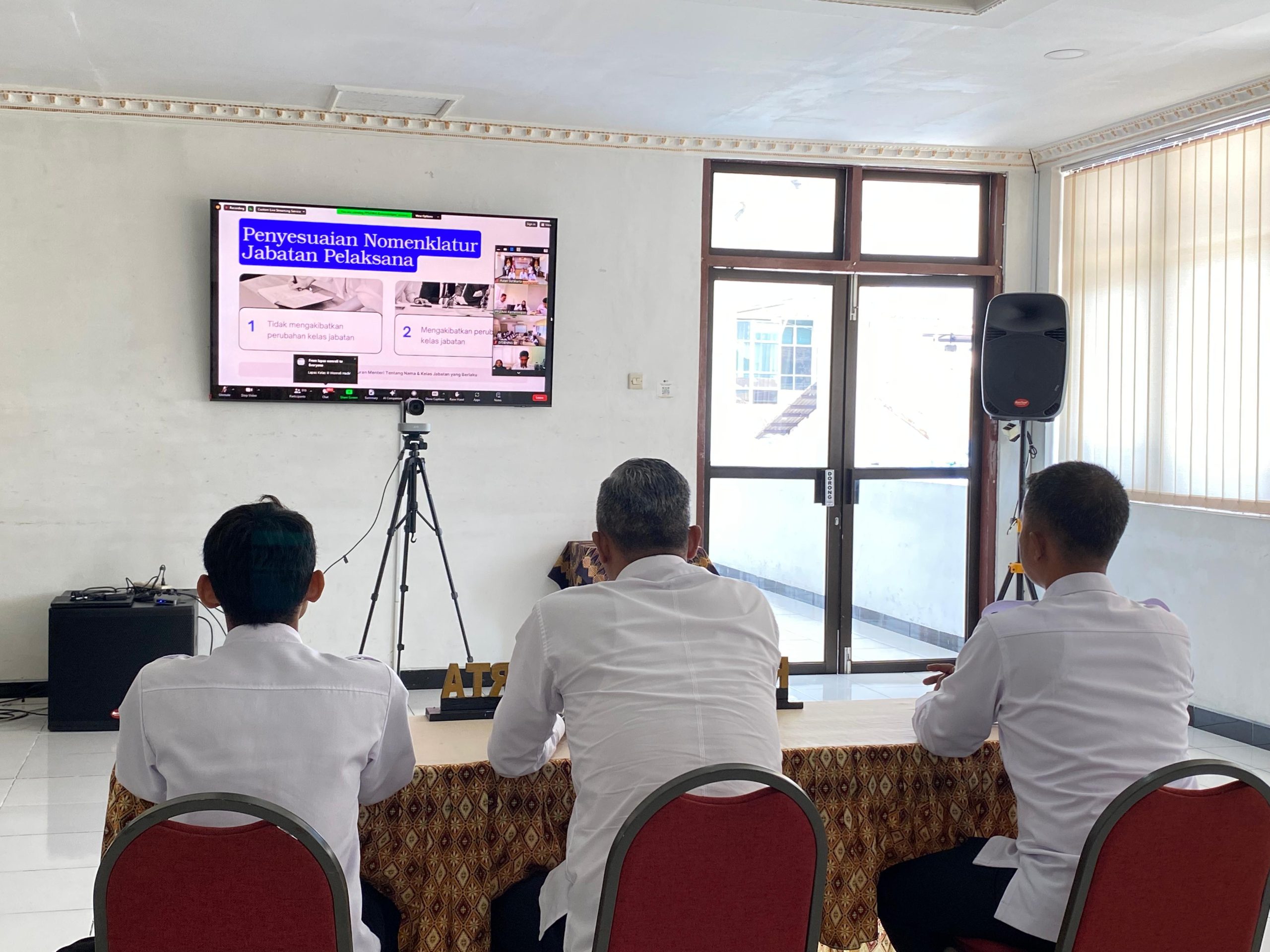 Rutan Surakarta mengikuti kegiatan ini secara aktif melalui Kepala Seksi Pengelolaan, Nopy Sigit yang didampingi oleh Kasubsi Umum, Wari Setiawan dan Kepegawaian serta staf terkait. Melalui kegiatan ini, jajaran Rutan Surakarta memperoleh pemahaman yang lebih jelas mengenai proses penyesuaian jabatan pelaksana, guna memastikan pelaksanaan tugas dan fungsi pegawai tetap berjalan efektif serta sesuai ketentuan yang berlaku.
