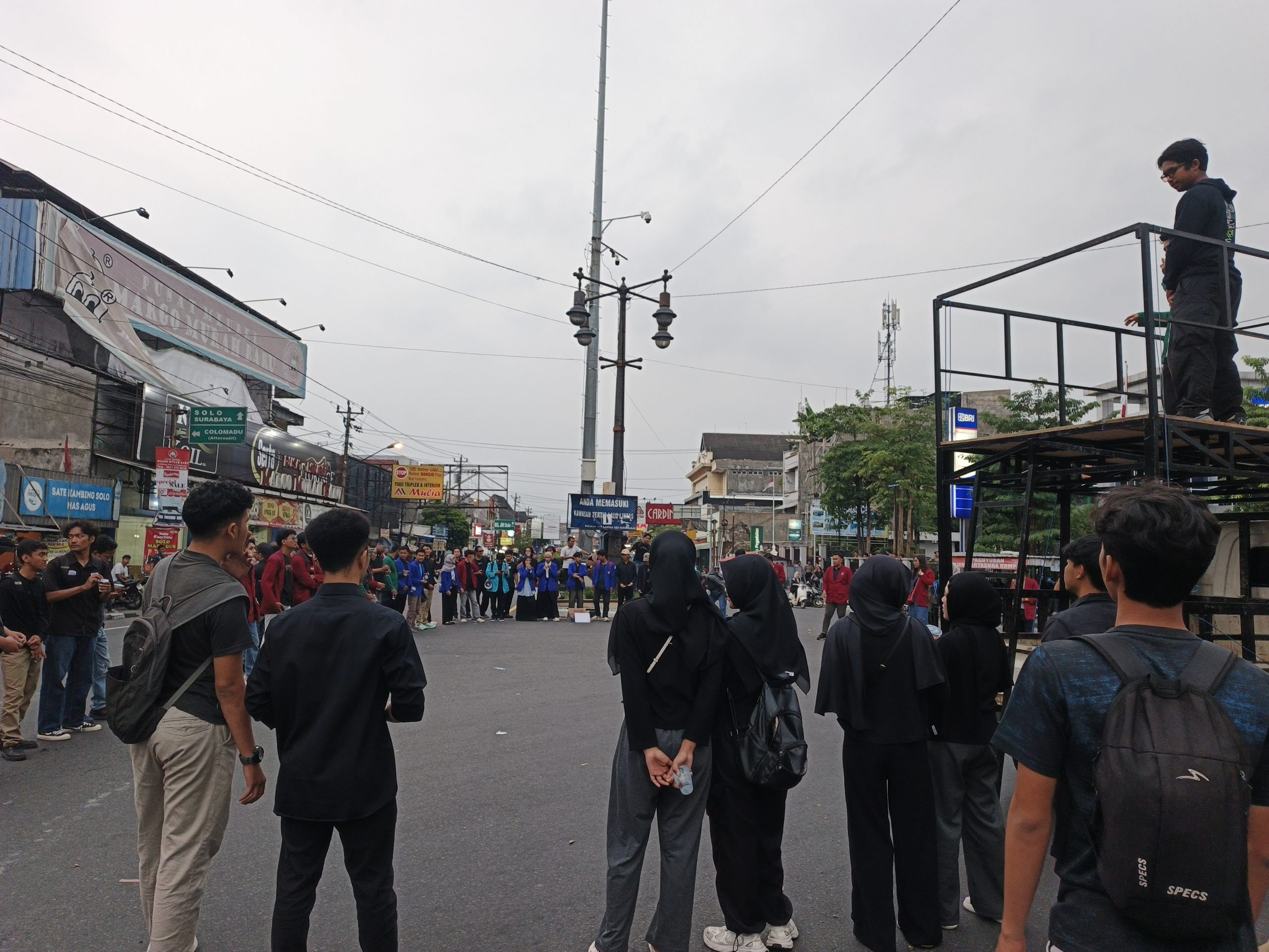 Aksi dimulai sekitar pukul 16.30 WIB, dengan mahasiswa berkumpul di Bundaran Kartasura. Mereka membentuk lingkaran besar di sekeliling mobil pikap yang berfungsi sebagai panggung orasi. Orasi-orasi yang disampaikan mahasiswa menyoroti berbagai aspek pemerintahan, mulai dari isu ekonomi, lapangan kerja, hingga masalah demokrasi dan kebebasan berpendapat.