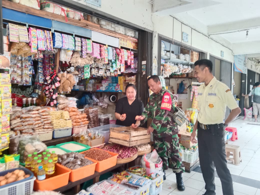 SURAKARTA | JENDELAJATENGNEWS.COM – Babinsa Kelurahan Nusukan,Koramil 02/Banjarsari,Kodim 0735/Surakarta Serka Supadmo bersama dengan Bapak Suyoto Selaku Lurah Pasar Tradisional Nusukan dan Security melaksanakan pengecekan harga sembako bertempat di Pasar Tradisional Nusukan Jalan Kapten Piere Tendean Kelurahan Nusukan,Kecamatan Banjarsari, Kamis (23/10/2025).