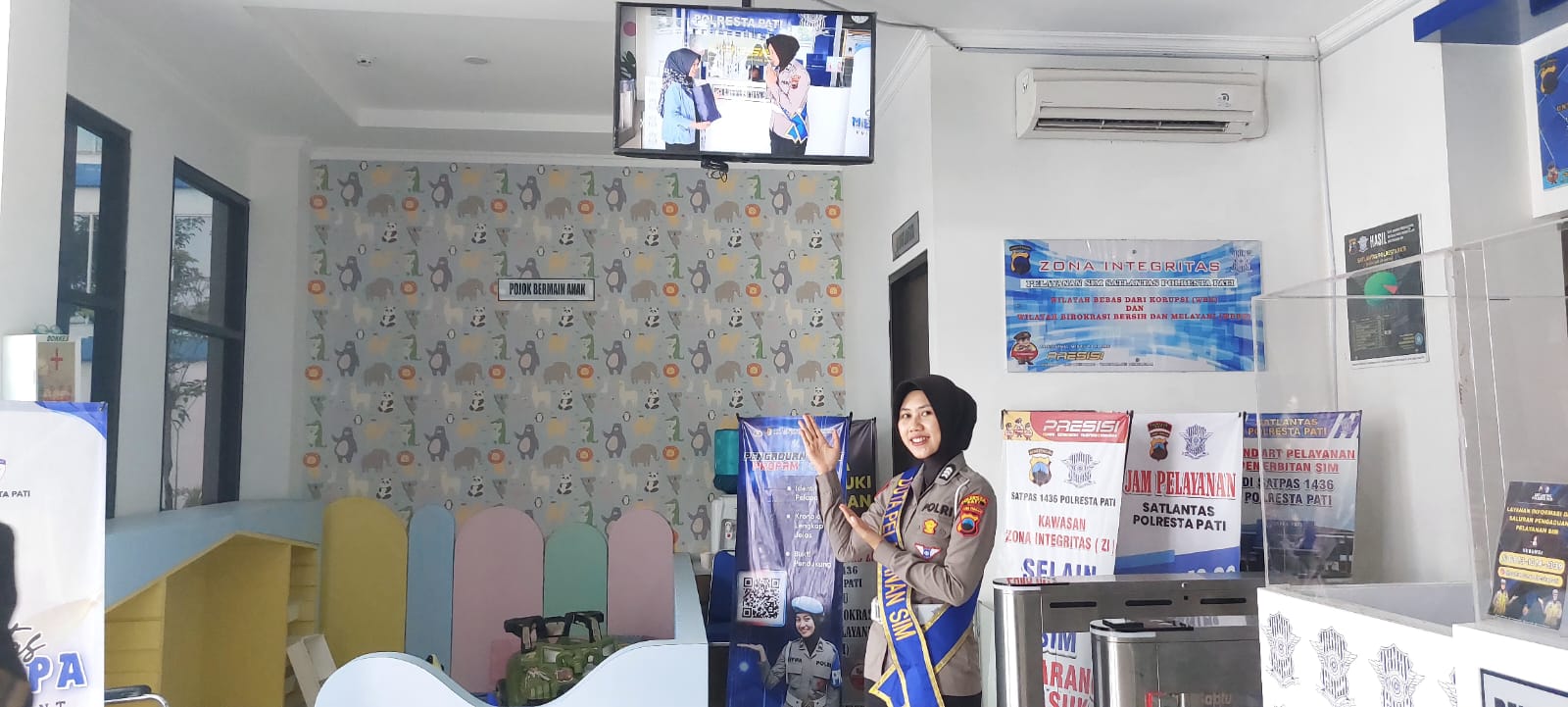 POLANTAS MENYAPA – Satpas Polresta Pati Siapkan Ruang Bermain Anak Bagi Pemohon SIM