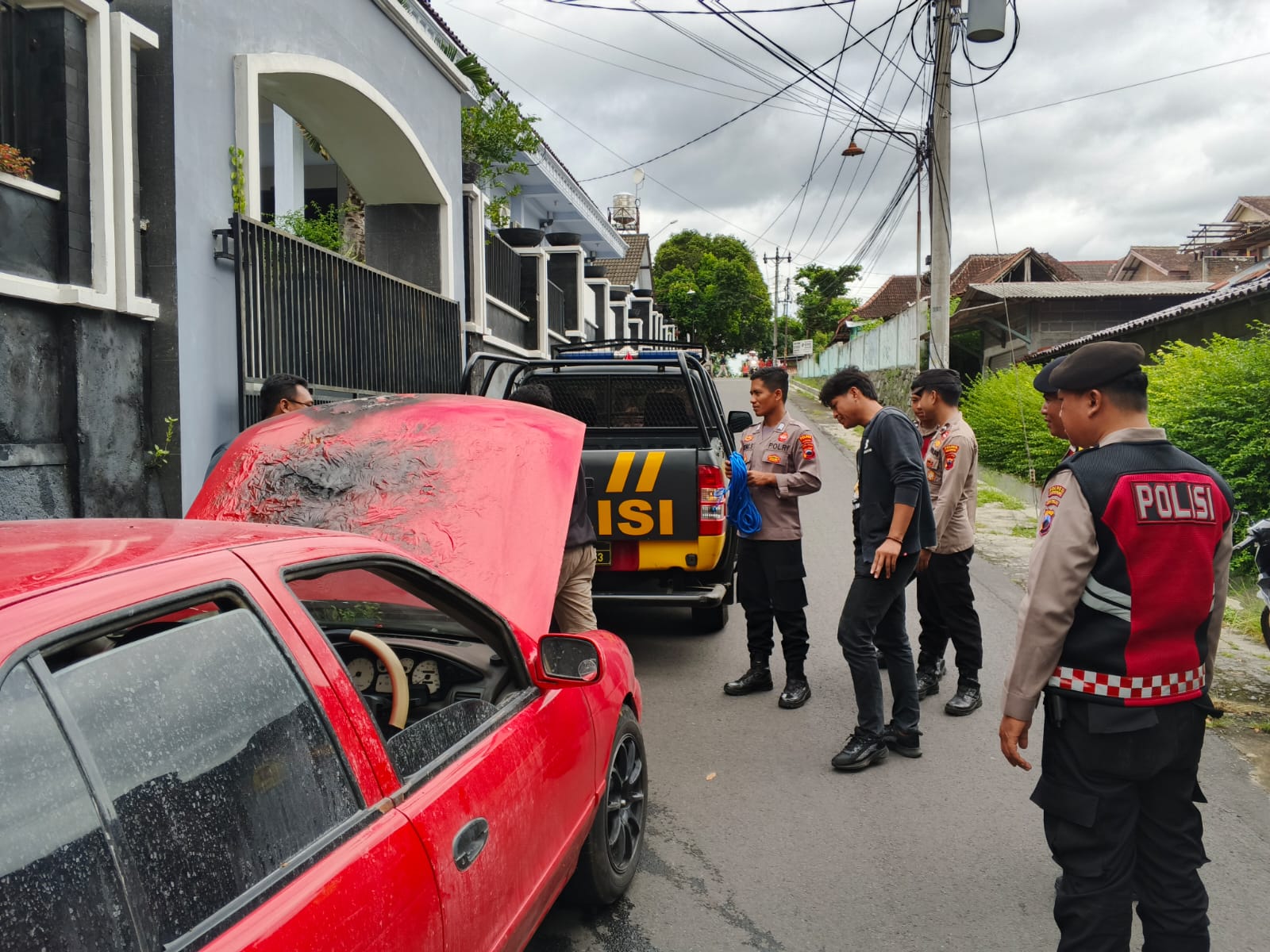 Beruntung, tidak ada korban jiwa dalam insiden ini. Namun, bagian depan mobil hangus terbakar, sementara kerugian materiil masih dalam pendataan.