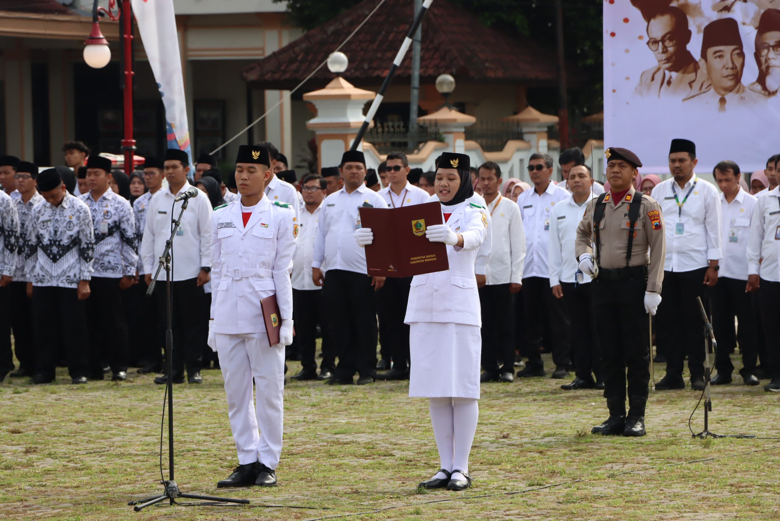 Bertindak selaku Inspektur Upacara, Bupati Wonogiri Bapak Setyo Sukarno, menyampaikan amanat penuh makna yang mengajak seluruh elemen masyarakat untuk meneladani nilai perjuangan para pahlawan bangsa.