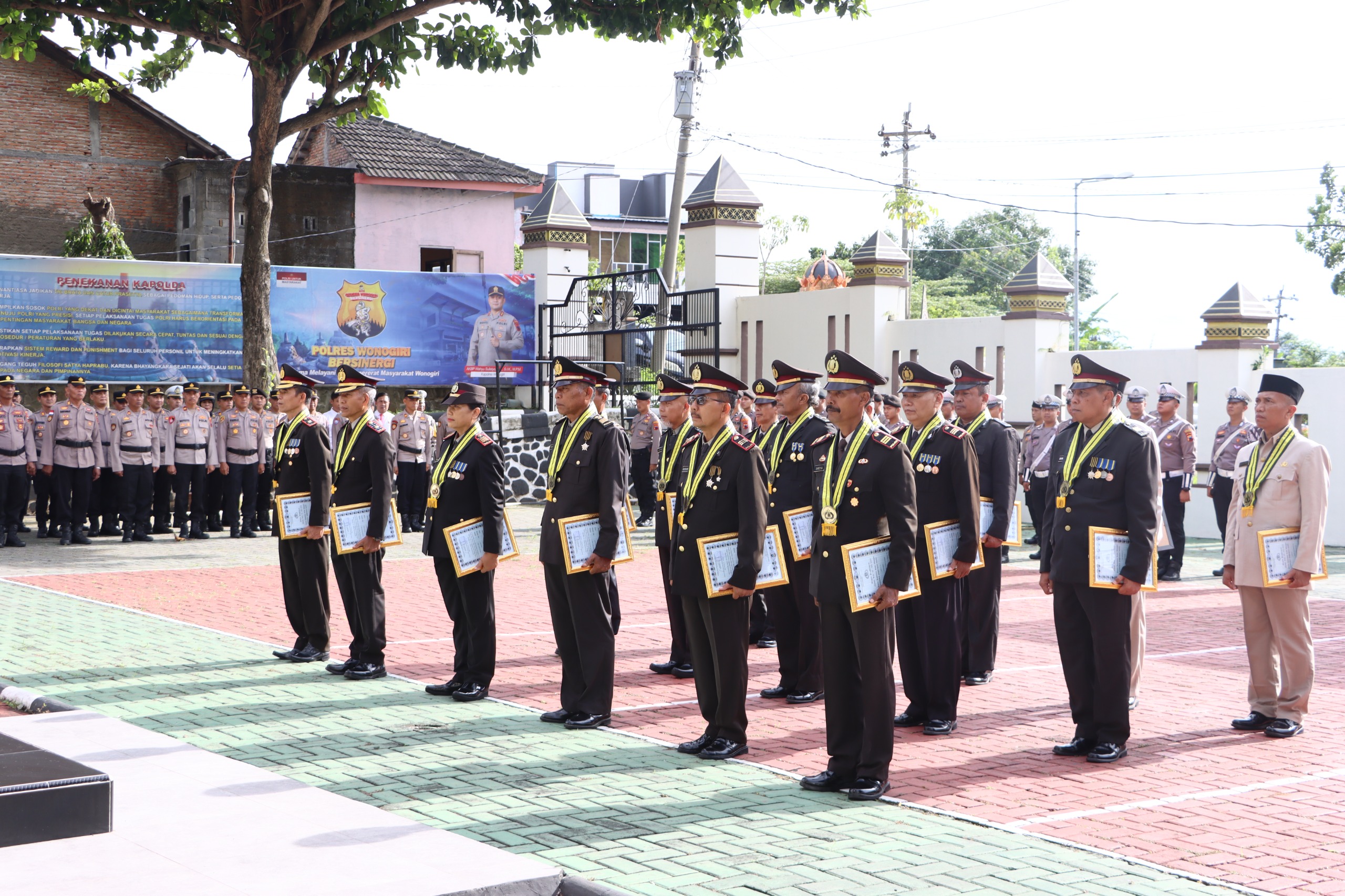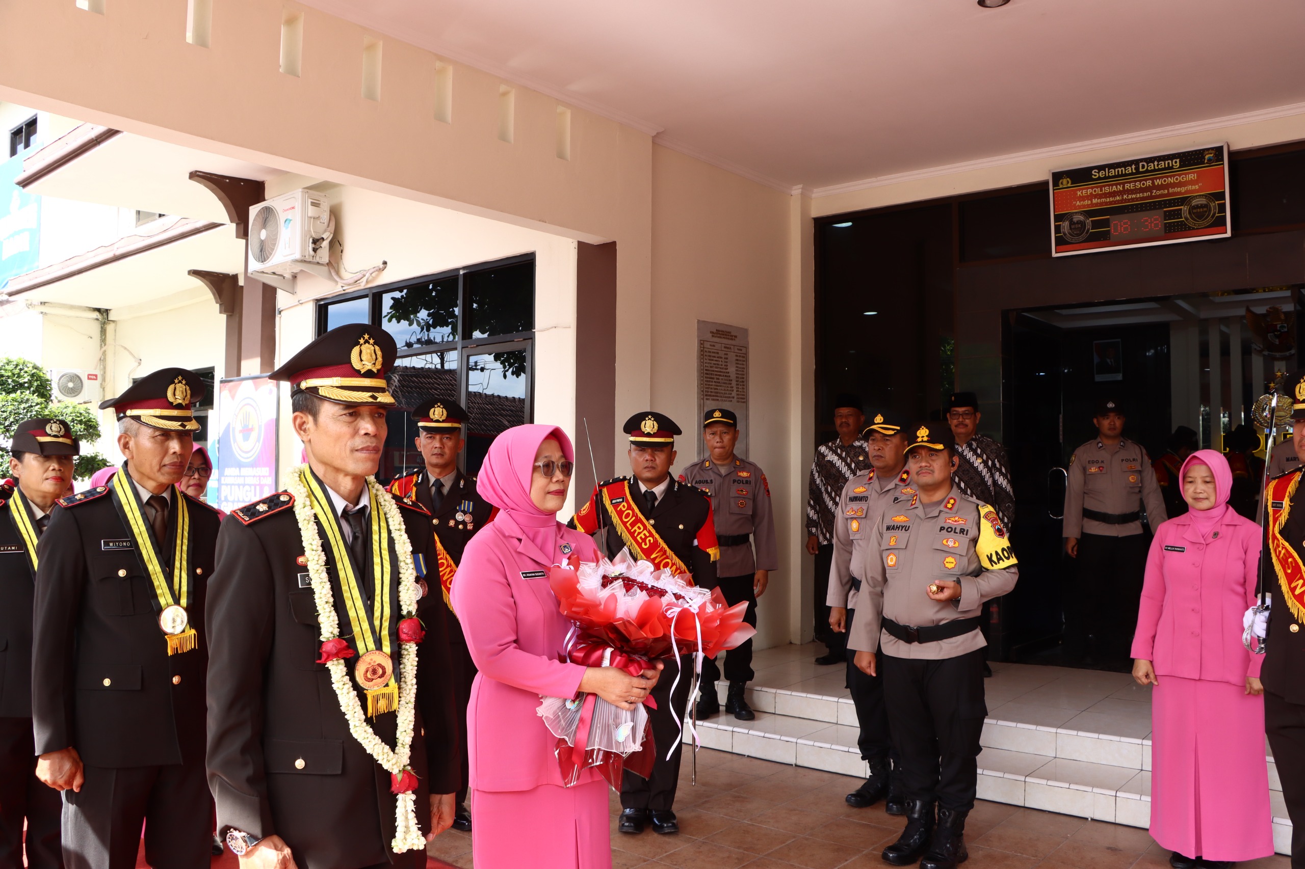 Sebanyak 22 personel menerima penghormatan purna bakti, terdiri dari perwira menengah, perwira pertama, bintara, serta ASN Polres Wonogiri.