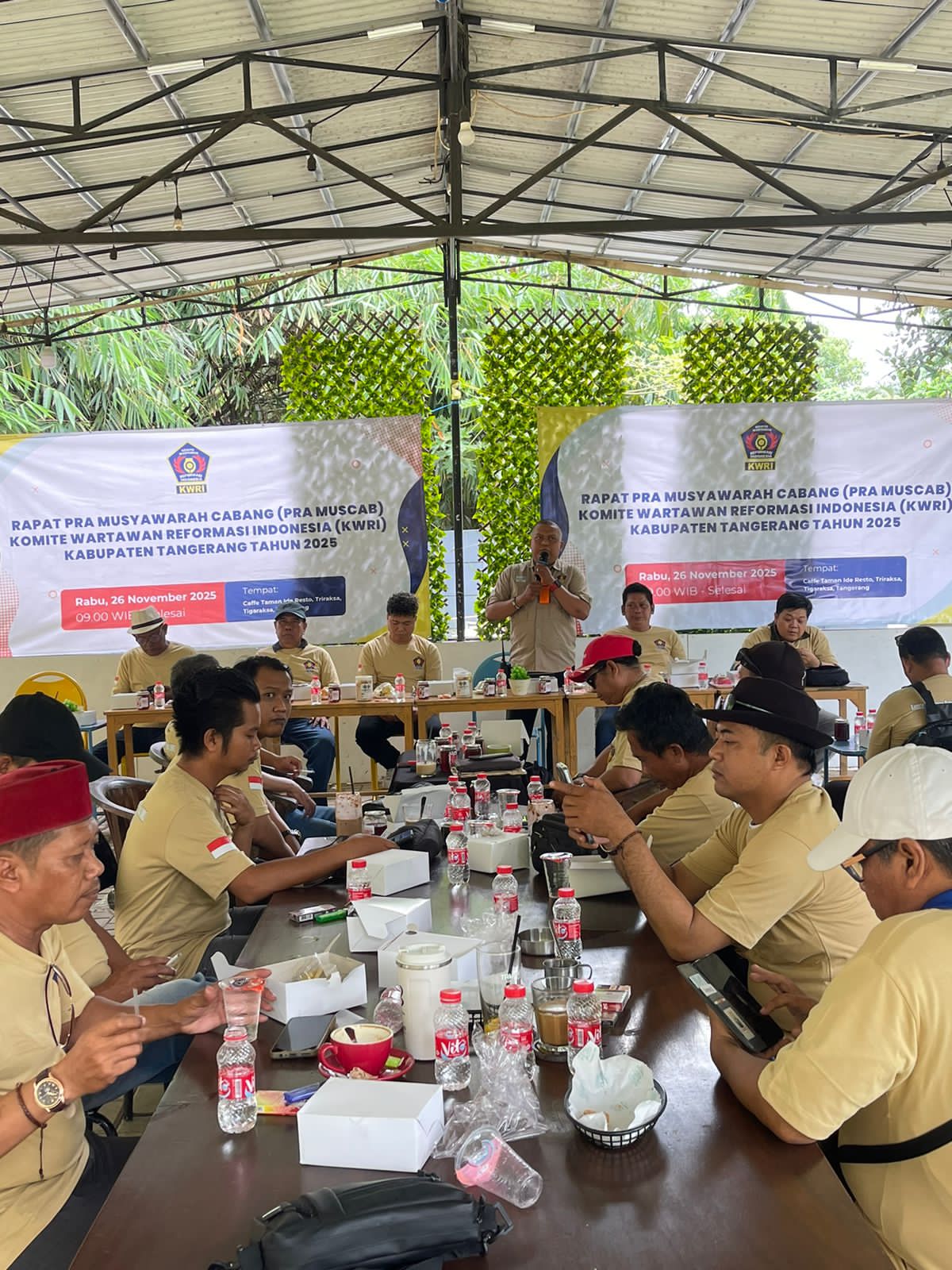 Tangerang – Dewan Pimpinan Cabang Komite Wartawan Reformasi Indonesia (DPC KWRI) Kabupaten Tangerang menggelar kegiatan Pra Musyawarah Cabang (Pra Muscab) pada hari ini di Kafe Taman Ide, Triraksa, Kecamatan Tigaraksa Kabupaten Tangerang pada Rabu, (26/11/2025).