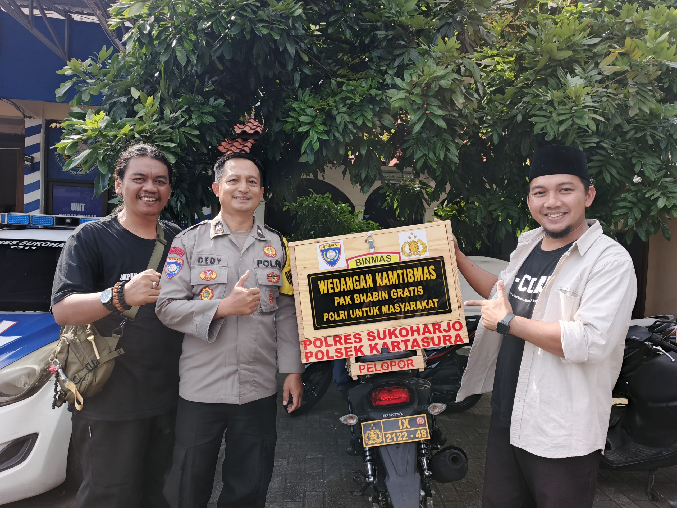 KARTASURA, 16 Desember 2025 – Ustadz Sufyan Al Kayis memberikan apresiasi kepada Bhabin Dedy dari Polsek Kartasura, Polres Sukoharjo, yang melakukan aksi unik dengan berkeliling membagikan kopi gratis kepada warga sambil memberikan himbauan.