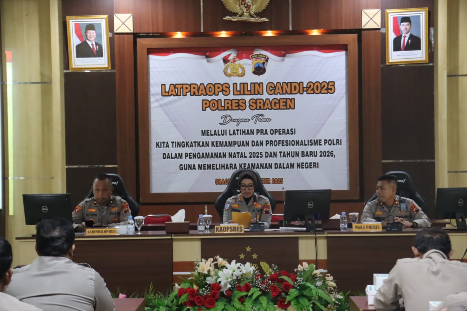 Sragen, Jateng – Menindaklanjuti koordinasi lintas sektoral yang telah dilakukan sebelumnya, Polres Sragen menggelar kegiatan Latihan Pra Operasi (Latpraops) Lilin Candi 2025 di Aula Mapolres Sragen, Kamis (18/12/2025).