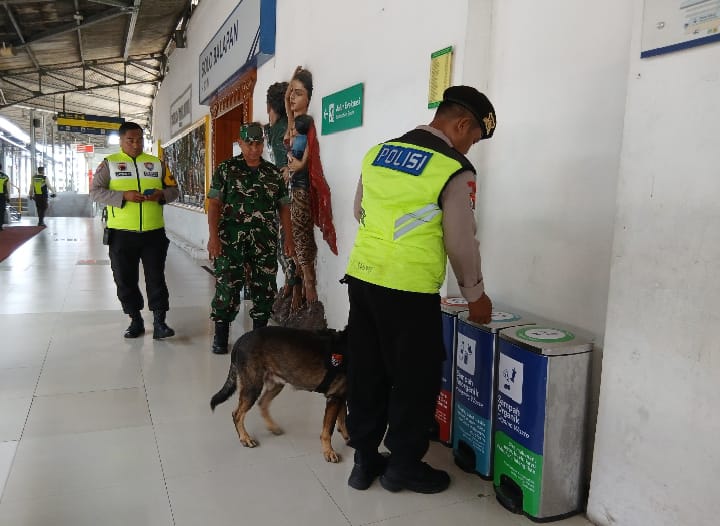 SURAKARTA | JENDELAJATENGNEWS.COM – Menjelang perayaan Natal 2025 dan Tahun Baru 2026 (Nataru) Babinsa Kelurahan Kestalan Koramil 02/Banjarsari, Kodim 0735/Surakarta Sertu Supriyanto bersama dengan Bhabinkamtibmas Kestalan Bripka Jayeng caraka Caraka beserta tim K9 Polresta Surakarta melaksanakan kegiatan patroli pengamanan obyek vital, bertempat di Stasiun Solo Balapan Jln. Wolter Monginsidi, Kelurahan Kestalan, Kecamatan Banjarsari, Senin (22/12/2205).
